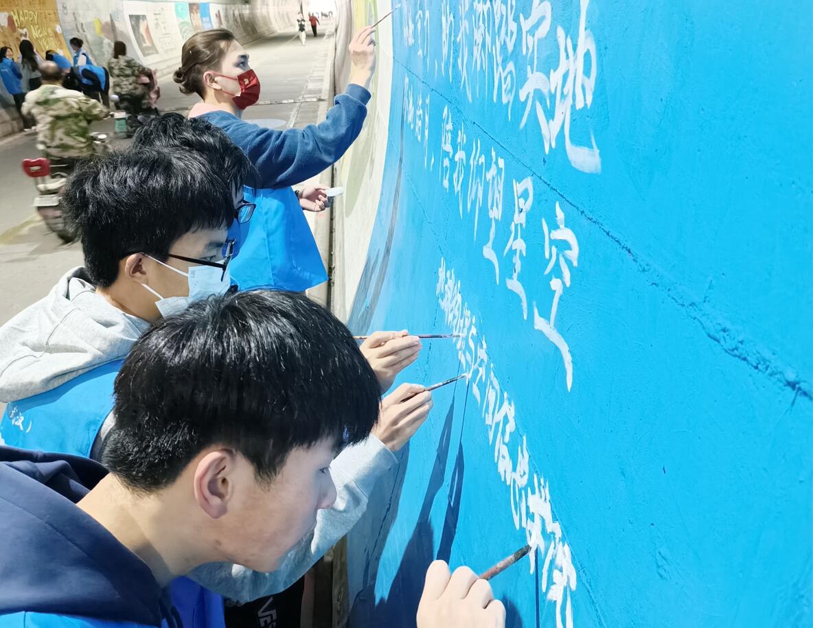 35日下午,地空学院志愿者协会开展了以隧道修补壁画,赓续雷锋精神主题志愿服务活动。