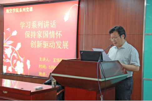 (通讯员张川 刘彦娇 摄影祁阳阳)5月5日下午,我校副校长王华在物探楼222报告厅为地球物理与空间信息学院全体师生党员授课,主题为《新时代:深刻领会系列讲话精神,保持家国情怀,以创新驱动为引领,践行伟大梦想》。