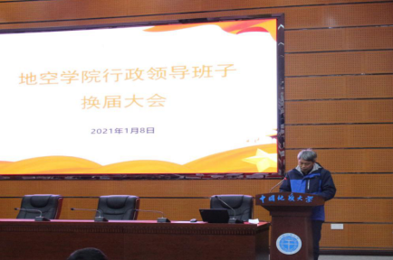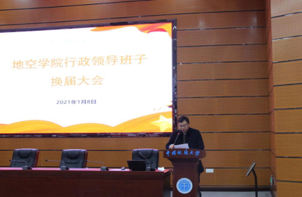 于东区教学综合楼A0113召开学院行政领导班子换届大会,党委常委、副校长刘勇胜、组织部副部长梁本哲出席会议并讲话,学院党政领导班子成员和全体教职工参加会议。会议由学院党委书记刘子忠主持。