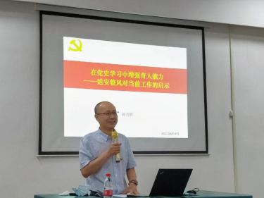 刘勇胜副校长以“延安整风”为主线,从整风运动的历史背景、历史条件、以及整风运动的基本过程和深远影响四个方面深入浅出地介绍了我党历时四年的一次思想更正的大运动,强调了延安整风对当前工作的启示及在党史学习中增强育人能力的要求。他提到,我们应加强党史学习,增强党性,全党思想的高度统一是党内政治生态建设首要任务;实事求是,发挥学科特色优势,建设地球科学领域国际知名一流大学;全校上下应遵守纪律,严明纪律、团结统一,才是凝聚事业发展的磅礴力量。同时,他指出,师生应落实习近平总书记在党史教育动员大会报告上的指示,学党史,增党性,促进德智体美劳全面发展,做好社会主义建设的接班人。