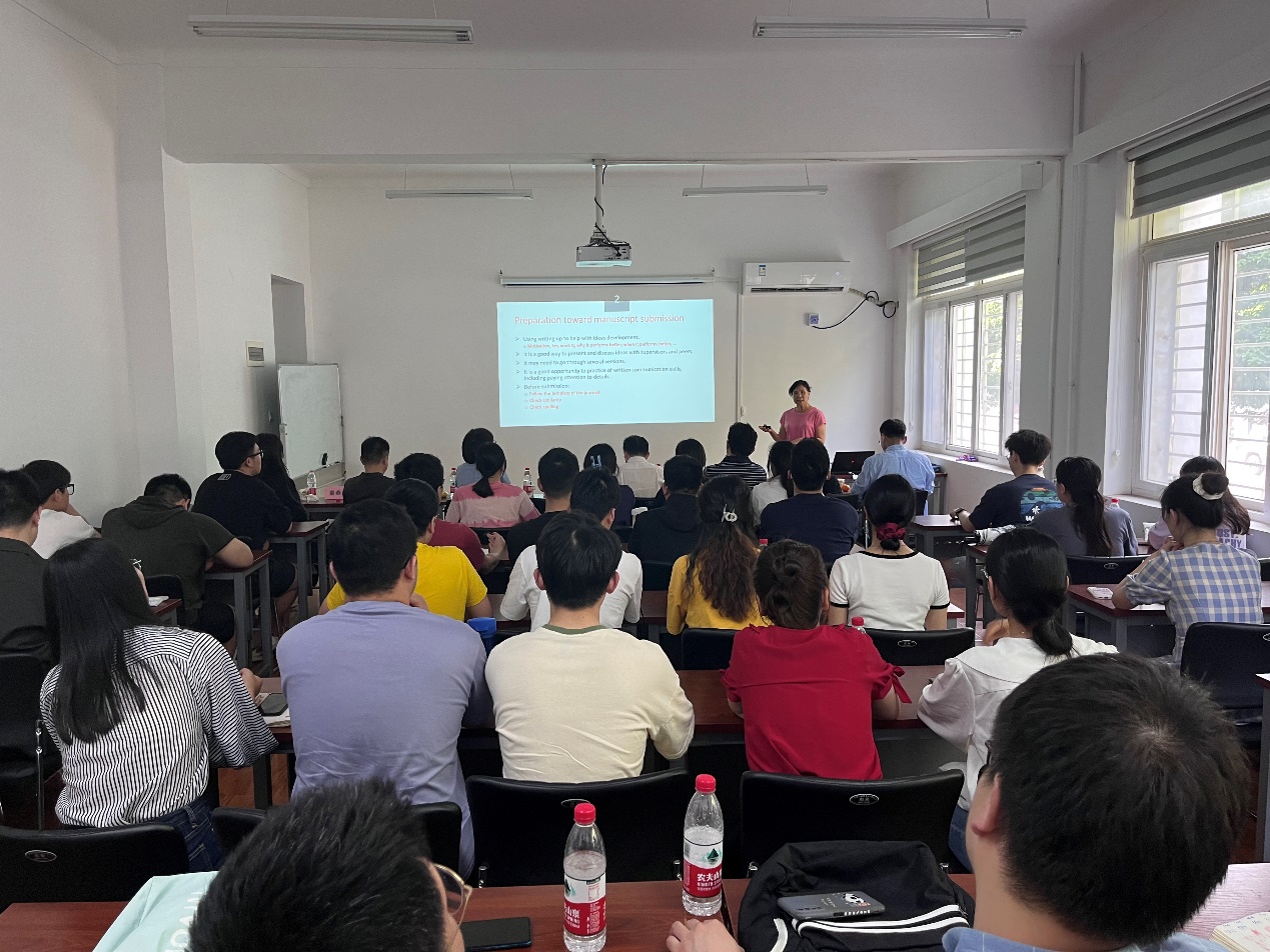 ,并在基委楼113会议室做了“From Author to Reviewer”的学术报告,全校50多位师生到场聆听。