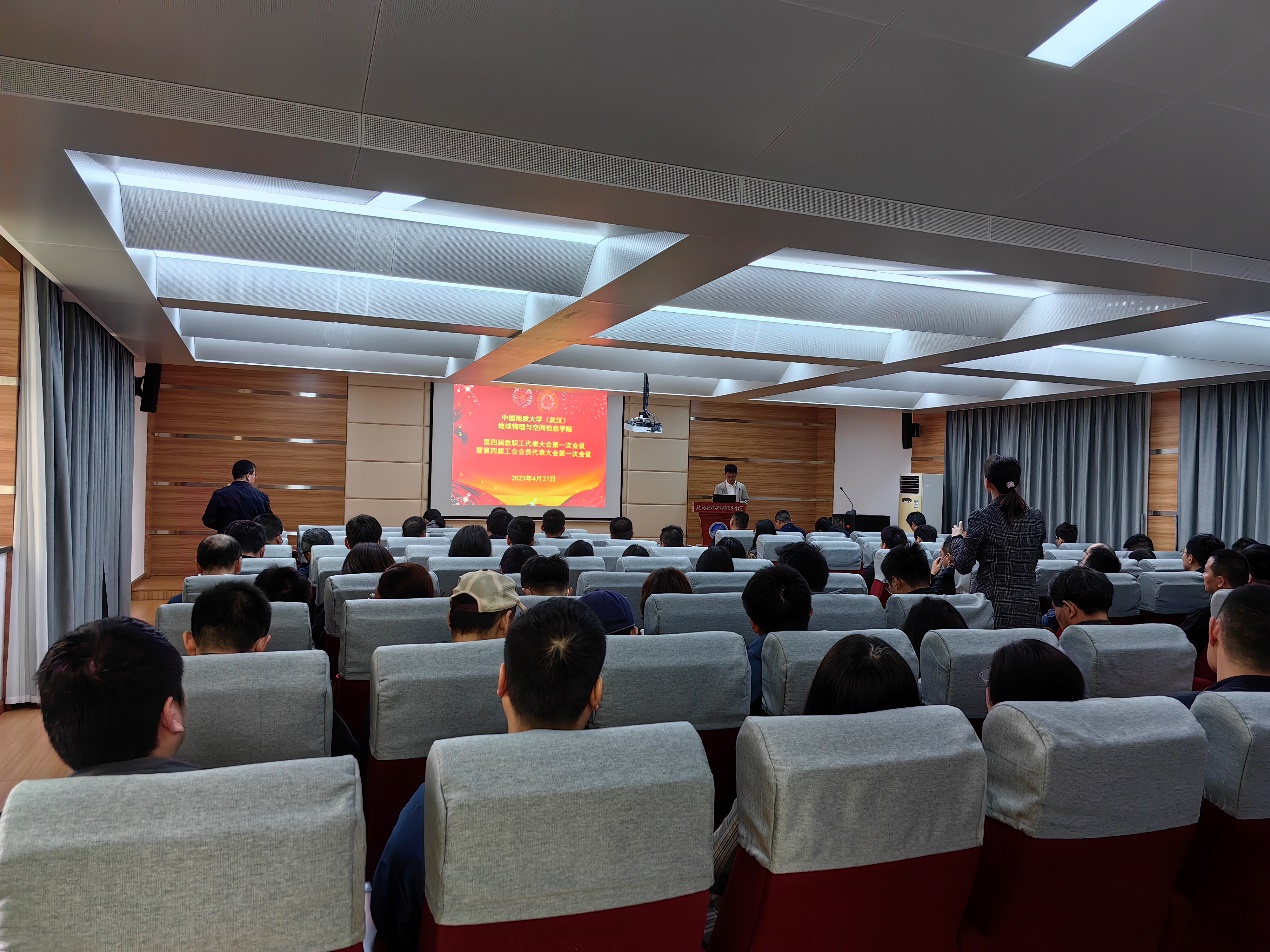在物探楼222报告厅召开第四届教职工大会第一次会议暨第四届工会会员大会第一次会议。学院全体教职工参加会议。会议由学院党委副书记黄金波主持。