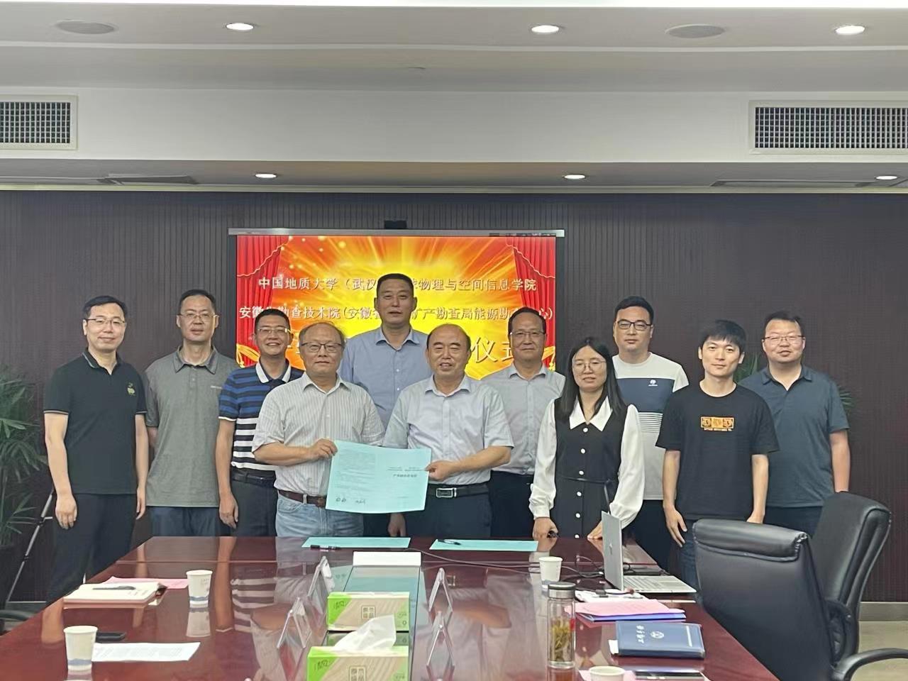 5月18日,马彦周、熊熊、罗银河、严哲、刘浩一行在安徽省勘查技术院调研。安徽省地矿局人事处二级调研员曾明元,院党委委员、副院长何家国和相关科室负责人及部分地大校友参加调研座谈会。
