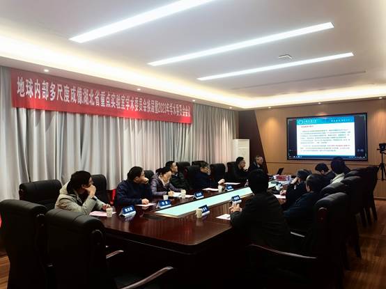 班子成员及部分教师代表出席本次会议,地球内部多尺度成像湖北省重点实验室负责人胡祥云主持会议。