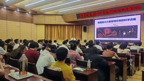 南望山校区东区八角楼学术报告厅,做了题为“我国首次火星探测任务的科学进展”的学术报告,向到场师生们详细介绍我国首次火星探测任务的执行情况及“天问一号”火星探测器的科学任务、科学研究进展和未来探测计划。报告由胡祥云教授主持。