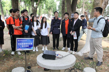 下午15:30,科普讲座结束后,师生们分组参与地震、重力、地磁、空间四个科普实践小组,在学院李媛媛、闫相相等教师的带领下来到物探楼后地球物理室外实验场。老师们介绍了无人机航磁的原理,指导学生实地操作重力仪、磁力仪、地震仪和望远镜使用,进行重力测量、磁场测量、地震波观测和空间探测,模拟野外数据采集,开展了激发地震波小实验,并分享了老师野外工作经历和亲近美丽自然环境、山河冰川的小故事,让同学们切实感悟科学魅力。“原来科学家的工作这么酷!每一步都需要耐心和精确。”一名学生兴奋地说道。