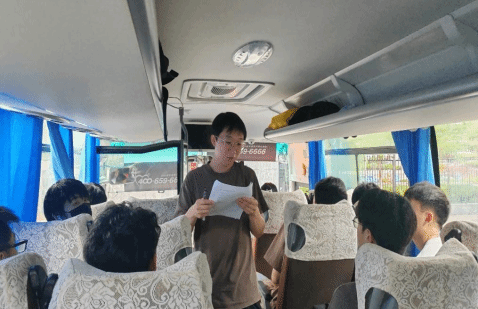 为深化学习成效,围绕二七运动历史背景、工运领袖事迹等内容,在返程途中创新开展“党史知识竞答”活动,现场气氛热烈。入党积极分子何健民凭借扎实的党史知识储备把得头筹,他分享道:“这次活动让我深刻体会到,党史学习不仅是书本上的文字,更是与革命先辈跨越时空的对话。只有将红色精神与专业学习结合,才能真正做到知行合一。”朱胤嘉同学表示:“通过知识竞答,我们以赛促学、以学促行,让党史教育更接地气、更具活力。”