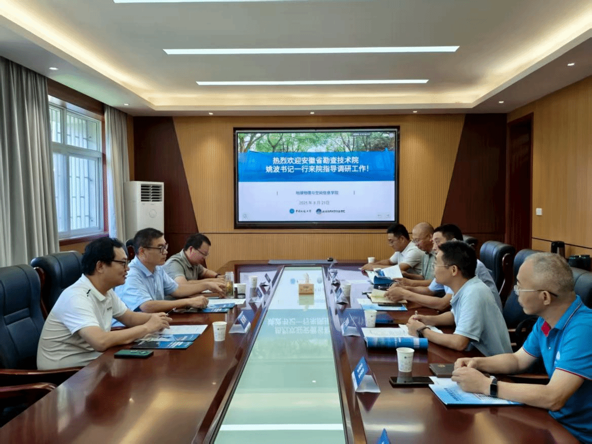 (通讯员 刘鹏宇)8月21日下午,地球物理与空间信息学院与安徽省勘查技术院座谈会在物探楼219会议室举行。安徽省勘查技术院党委书记、院长姚波,副院长、总工程师熊强青,总工办主任王金鑫,地球物理与空间信息学院党委书记马彦周,副院长罗银河,应用系主任张世晖,工会主席、实验中心主任张莹,应用系教师刘营,辅导员刘鹏宇参加会议。座谈会由罗银河主持。