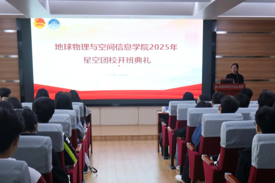 2025年11月5日中午,地球物理与空间信息学院2025年“星空团校”开班仪式在物探楼222正式举行。校团委副书记刘明辉、学院党委副书记郭小玉、辅导员高凌峰、刘鹏宇、全体兼职辅导员及新任团学骨干共同出席。仪式由学院分团委书记刘彦娇主持。