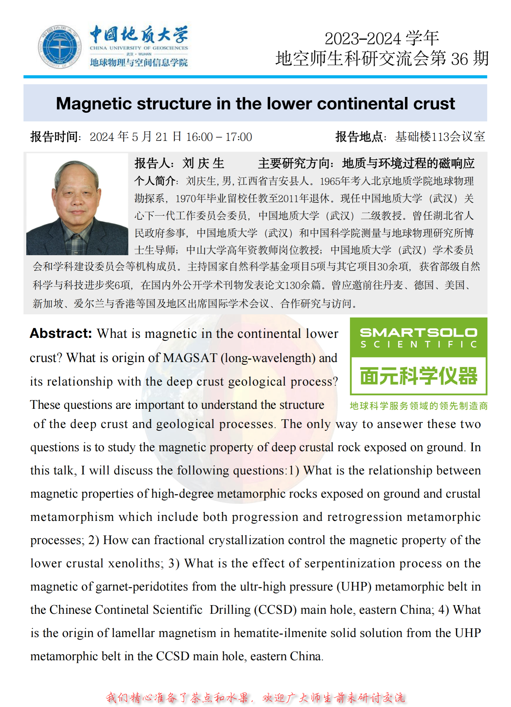 师生科研交流会【第36期】刘庆生 教授