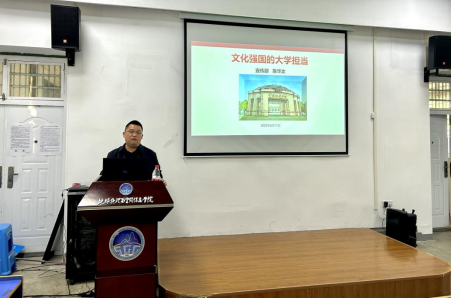 (通讯员 刘彦娇 陈耿夫)5月11日下午,校党委宣传部副部长应邀在基委楼101会议室为地空学院第74期入党积极分子培训班全体学员讲授题为《文化强国的大学担当》专题党课。