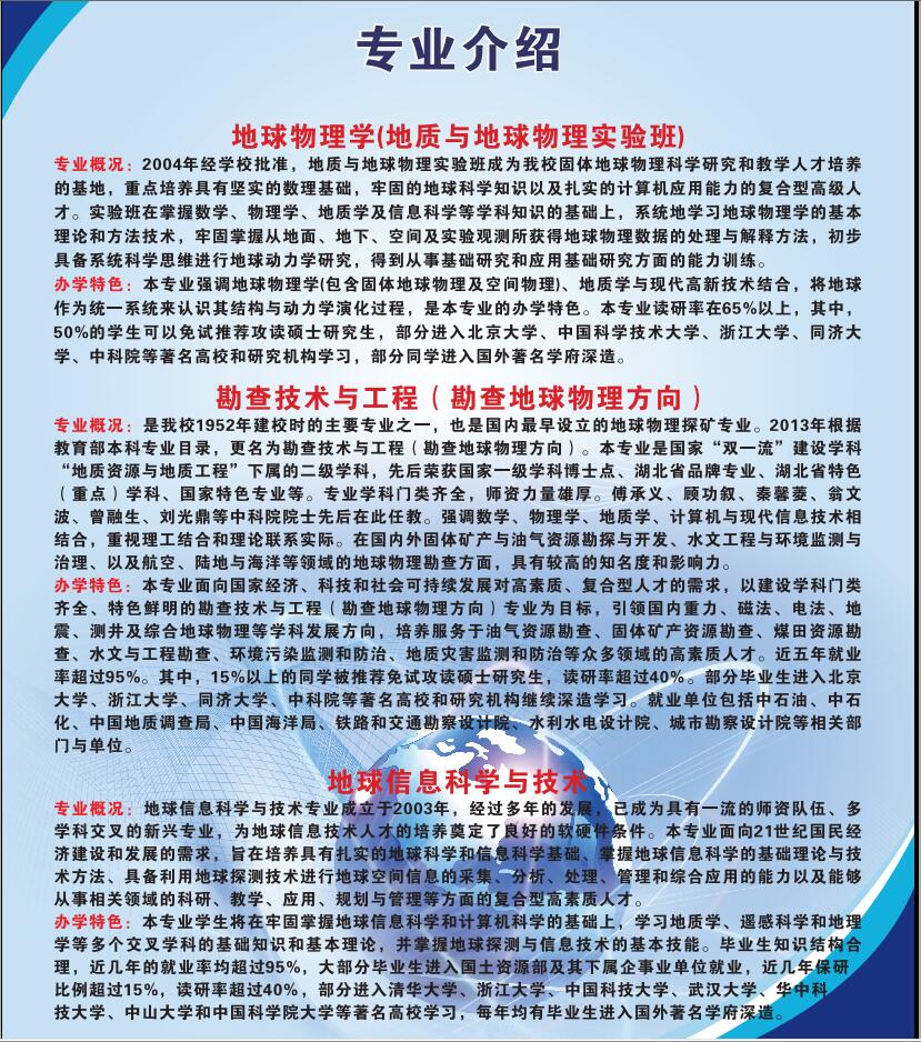 地空学院现有三个专业:地球物理学、勘查技术与工程、地球信息科学与技术。其中勘查技术与工程专业于2019年6月通过中国工程教育专业认证,