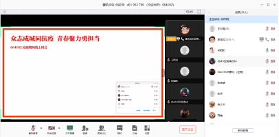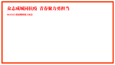 受新型冠状病毒的影响,根据《中国地质大学(武汉)关于调整2019-2020学年第二学期本科教学工作安排的通知》的精神要求,064182团支部积极响应学校“停课不停学”的号召,组织各位同学在家中举行线上团会。在活动开始前,每一位支部成员均提前上线签到,体现了同学们对本次团会的重视程度。14时,全体在线上奏唱国歌,主持人李伟光宣布“众志成城同抗疫,青春聚力勇担当”主题线上团会正式开始。