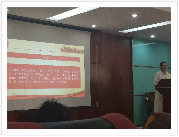 第二个环节为学习长征精神。在冯梅同学的带领下,通过学习习近平总书记的在三军会师纪念馆的讲话,同学们了解到了何为长征精神。长征精神的内涵就是革命理想高于天,不怕牺牲、排除万难去争取胜利,面对形形色色的敌人决一死战、克敌制胜。