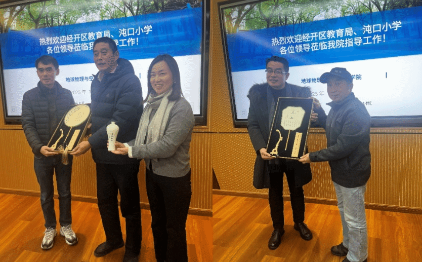 1月9日上午,武汉经济技术开发区教育局、沌口小学一行来院就深化科普合作进行座谈交流。武汉经济技术开发区教育局党委委员、副局长刘冰艺,武汉经济技术开发区沌口小学党总支书记张传军、校长谢艳霞、副校长刘福璇,科普专家、地球科学学院李长安教授,地球物理与空间信息学院党委书记马彦周、副院长严哲、固体系主任唐启家、应用系教师刘营参加座谈会。会议由地空学院副院长严哲主持。