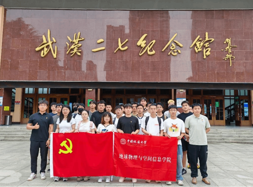 武汉二七纪念馆是全国首批爱国主义教育示范基地,馆内珍藏文物史料1200余件,通过全息影像、场景复原等现代技术生动还原了1923年京汉铁路工人大罢工的壮烈历史。活动中,全体成员瞻仰朱德同志题写的“二七烈士永垂不朽”纪念碑,并跟随讲解员深入了解二七运动的时代背景与历史意义,在林祥谦烈士雕像、罢工文书原件等珍贵文物前驻足凝思。城市地球物理方向本研联合党支部李泗雨感慨道:“二七运动是中国共产党领导的第一次工人运动的高潮,先烈们用生命诠释了工人阶级的团结与无畏。作为新时代共产党员,我们更应传承这份精神,将‘艰苦朴素,求真务实’的校训精神融入报国实践中。”