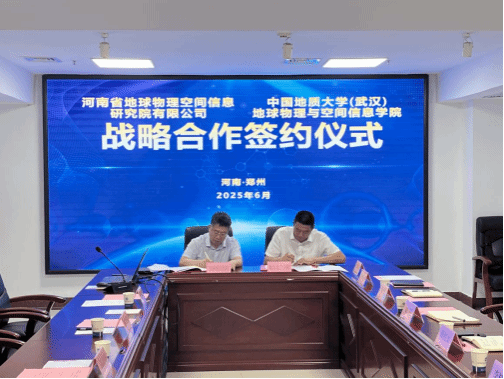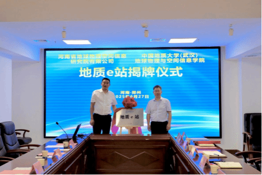 (通讯员 刘鹏宇)6月27日,地空学院党委书记马彦周一行赴河南省地球物理空间信息研究院有限公司开展技术交流、签署战略合作协议,并举行“地质e站”揭牌仪式。地空学院党委书记马彦周,自动化学院院长曹卫华,本科生院副院长、地空学院副院长严哲,地空学院教师李建慧、卞爱飞、刘鹏宇,河南省地球物理空间信息研究院有限公司党委书记、董事长韩红太,总经理李树东、副总经理刘卫、副总经理郑金宝等参加座谈交流。